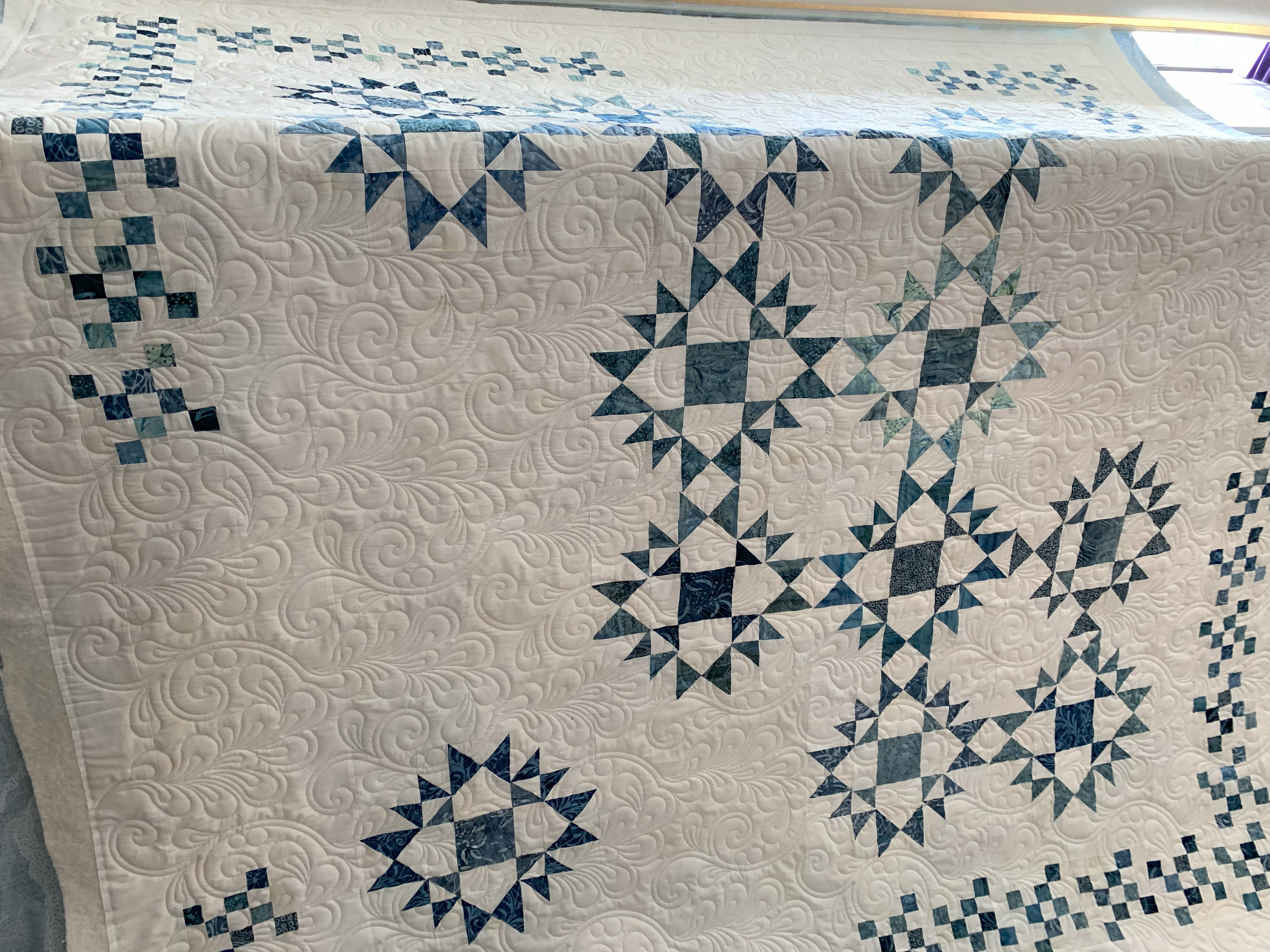 I have over 500 designs that I use for all over quilting. When you drop off your quilt, I will ask you if you have a sense of what type of design you are after (for example, feathers, circles, butterflies, masculine, etc). I am happy to show you a few ideas on my computer in my home office when you drop off your quilt(s), or I can send you a few ideas via text or email after I have had a chance to look at your quilt more closely. Some customers also let me choose the design completely. There is a gallery of pictures on this website (and I will add more gradually). Each picture includes the name of the quilting design. I have more designs available than what is reflected on my website.